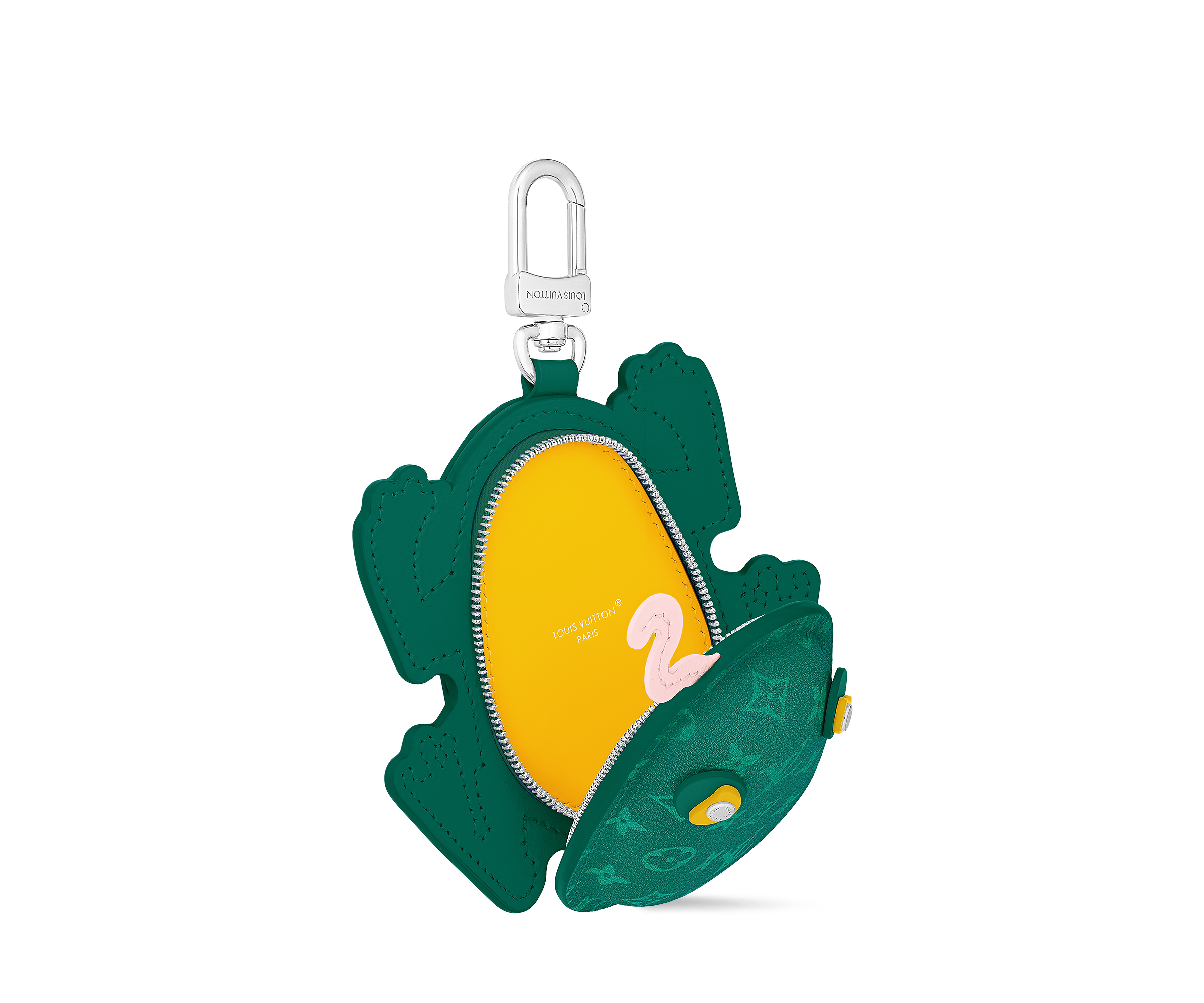 Crafted in the shape of a frog, this charming accessory adds a whimsical twist to your bag or keys. Made from Monogram canvas with leather details, it features Monogram Flower eyes, a zip closure