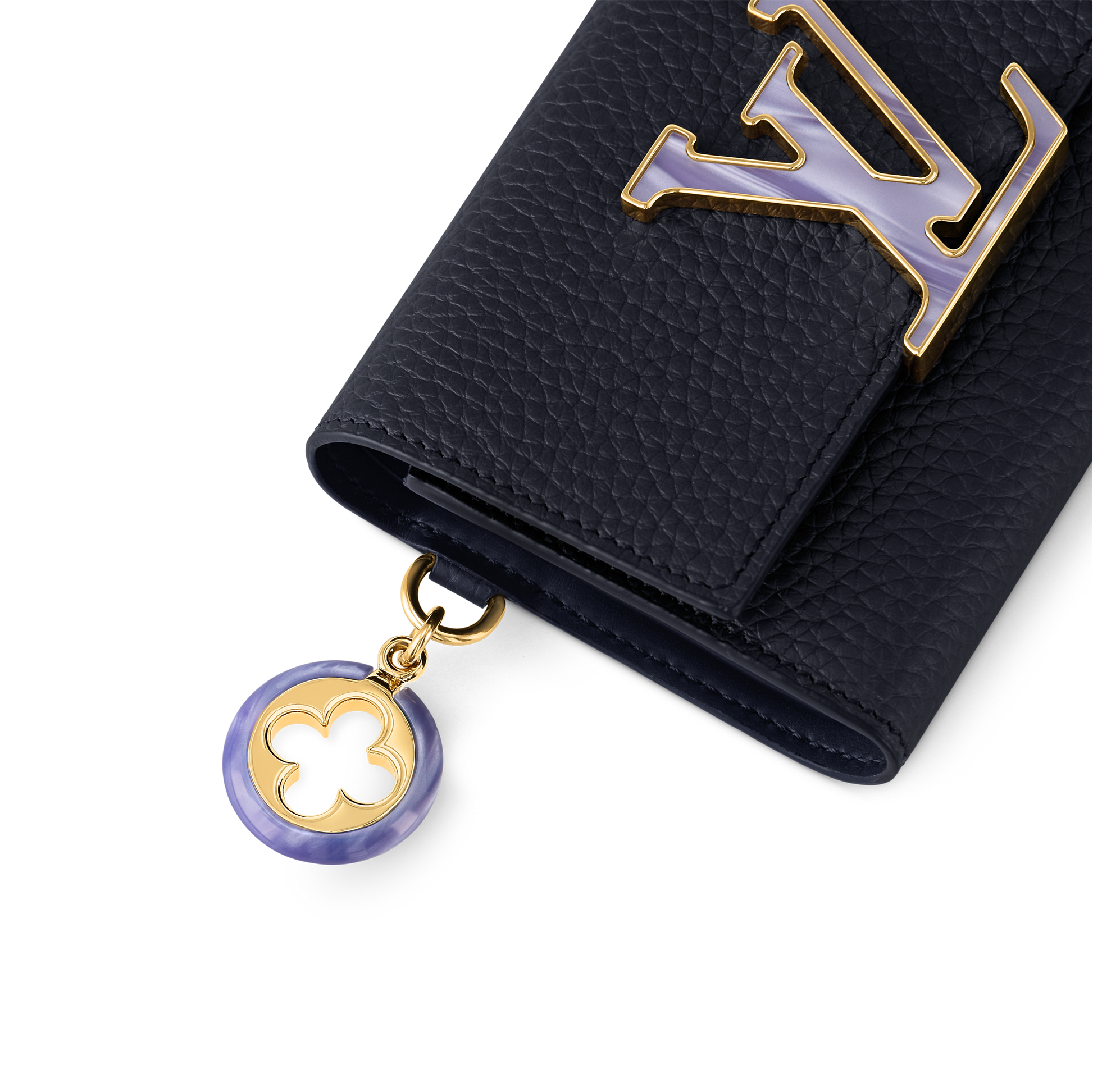 Inspired by the house's iconic Capucines bag, this Capucines wallet is crafted from Taurillon leather in an elegant Navy Blue. Part of the Harmony collection, it is adorned with Monogram flower and LV logo in Resin of the same color. The compact design fits easily into many types of bags and has multiple compartments and convenient card slots.
