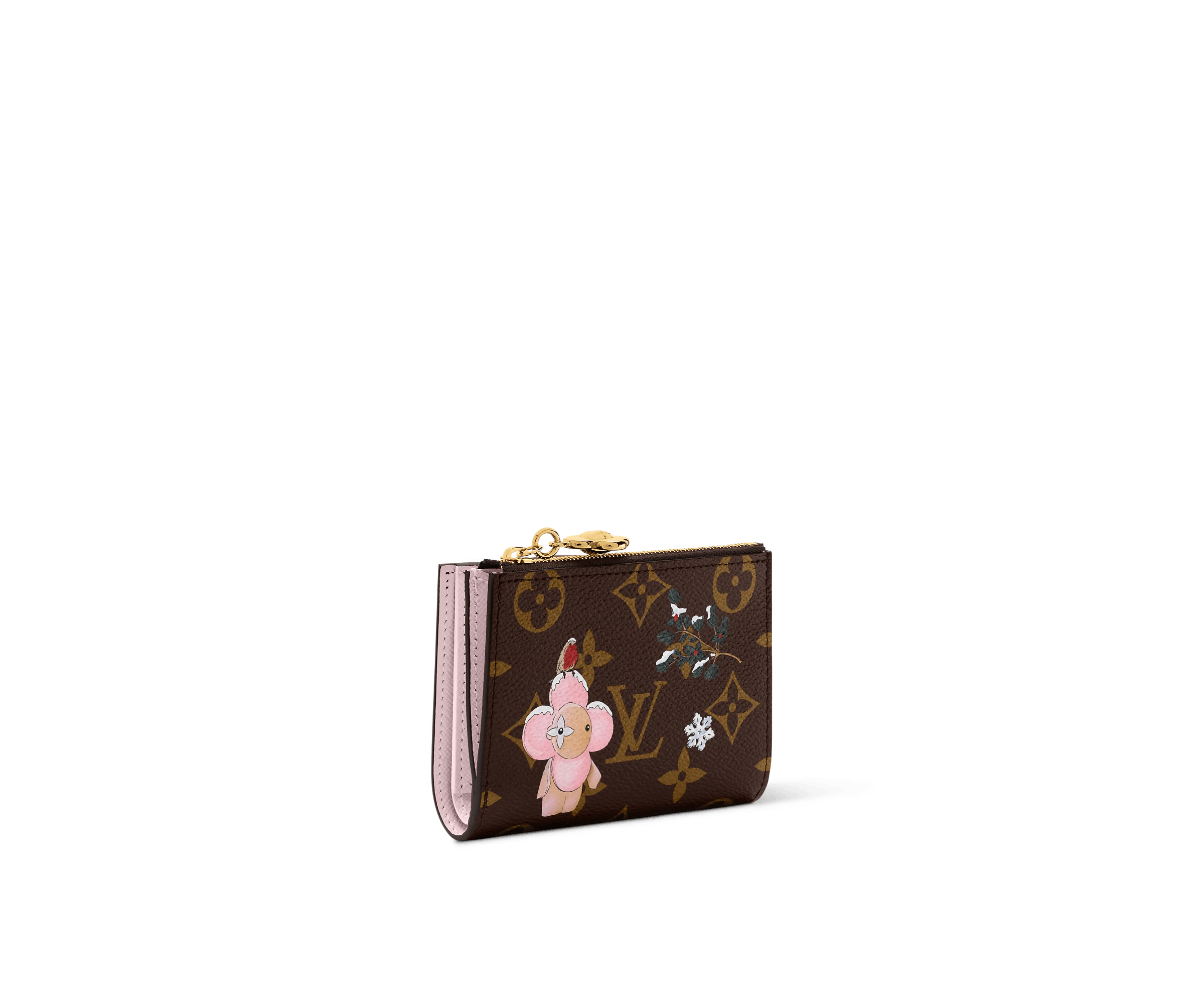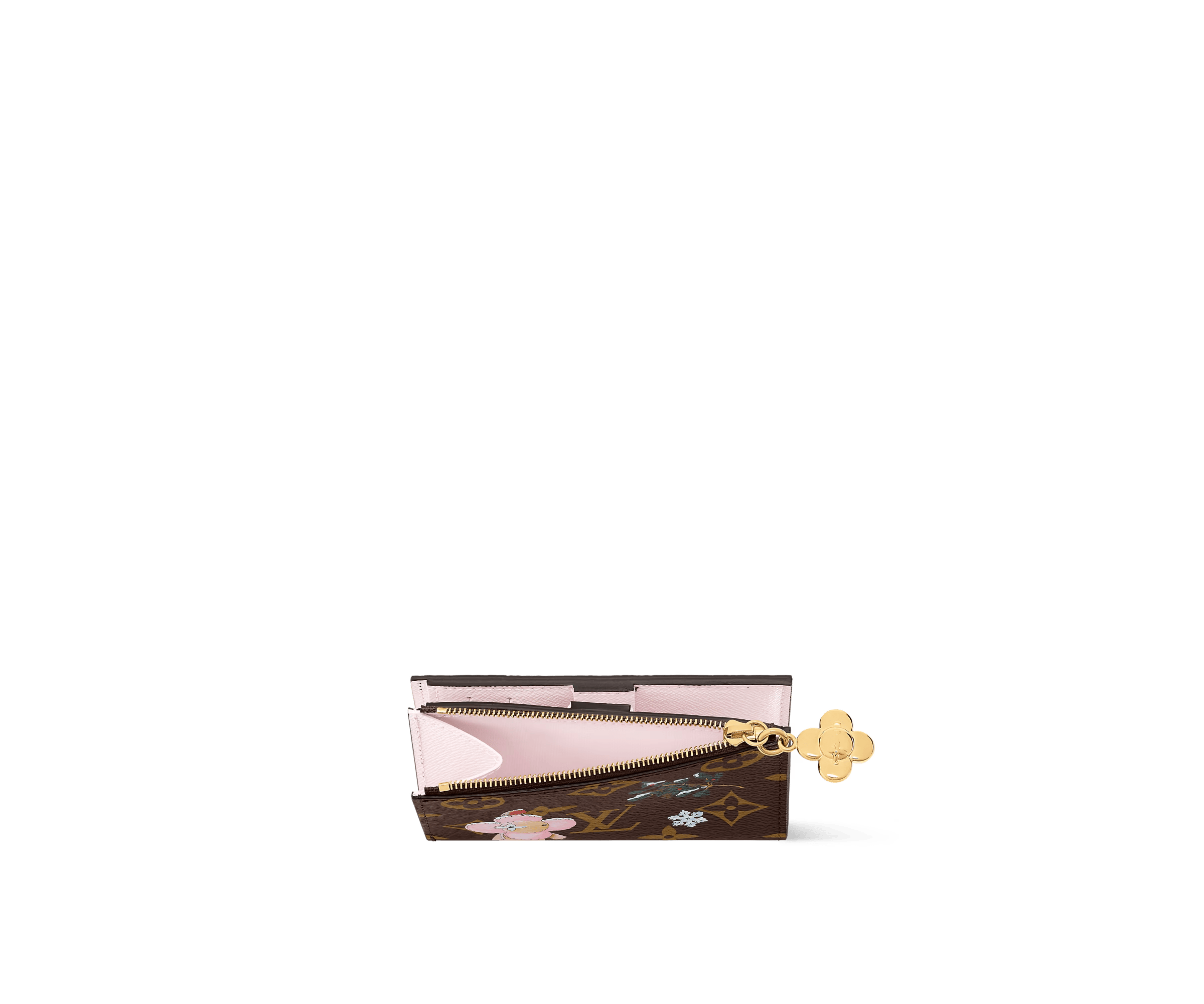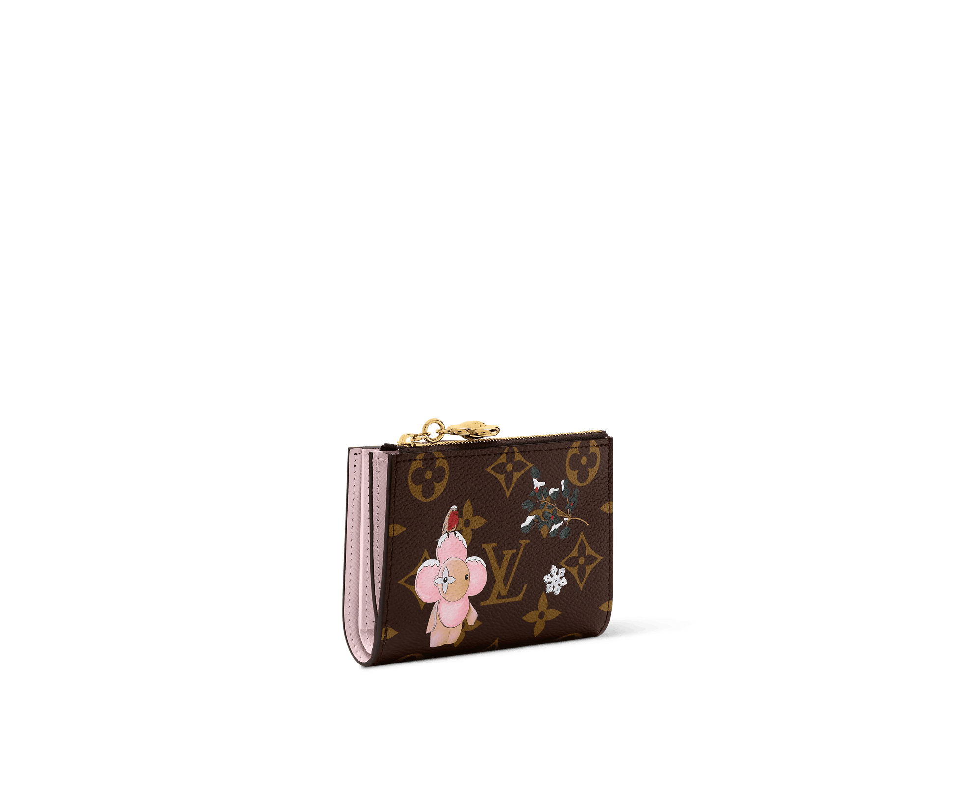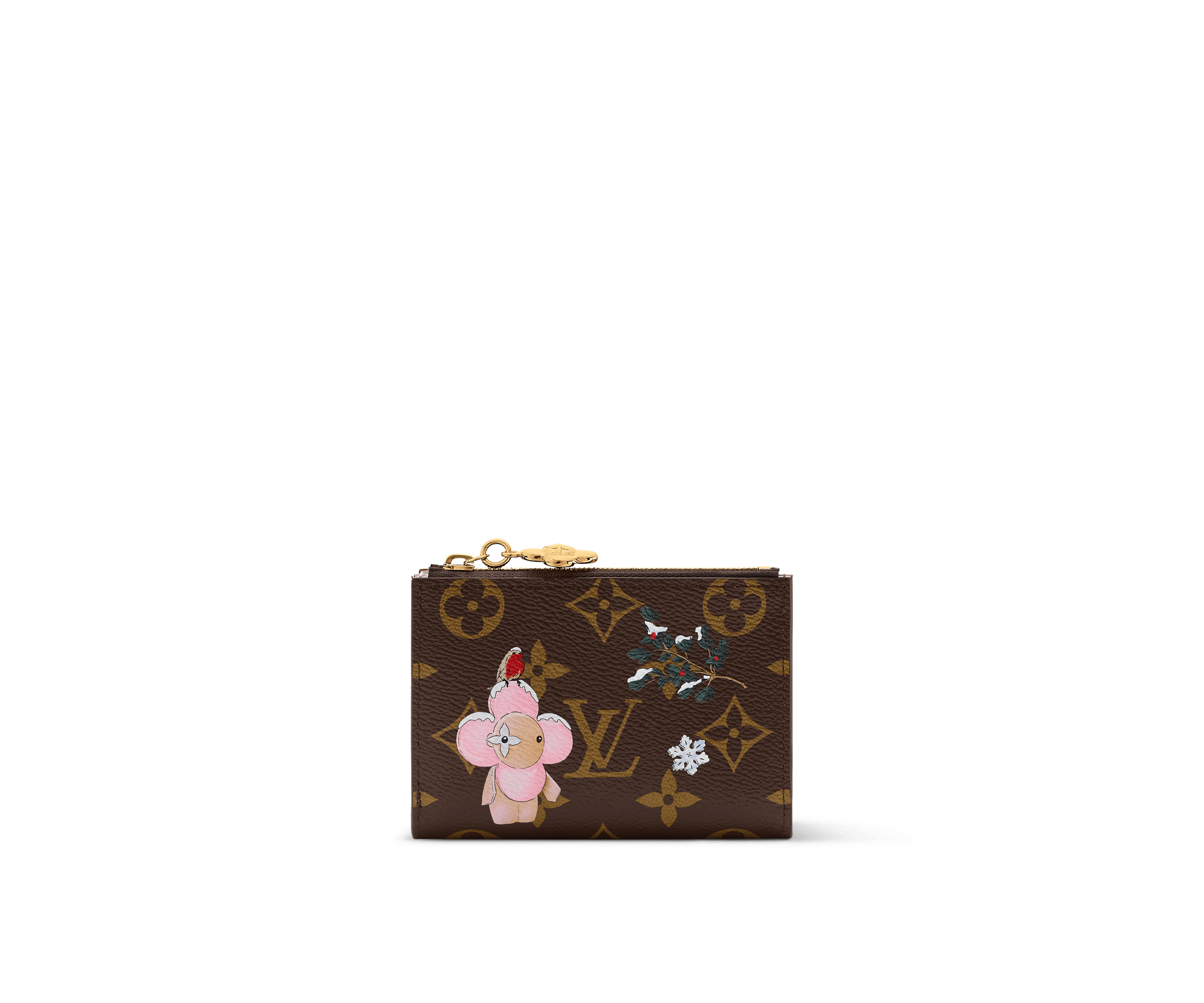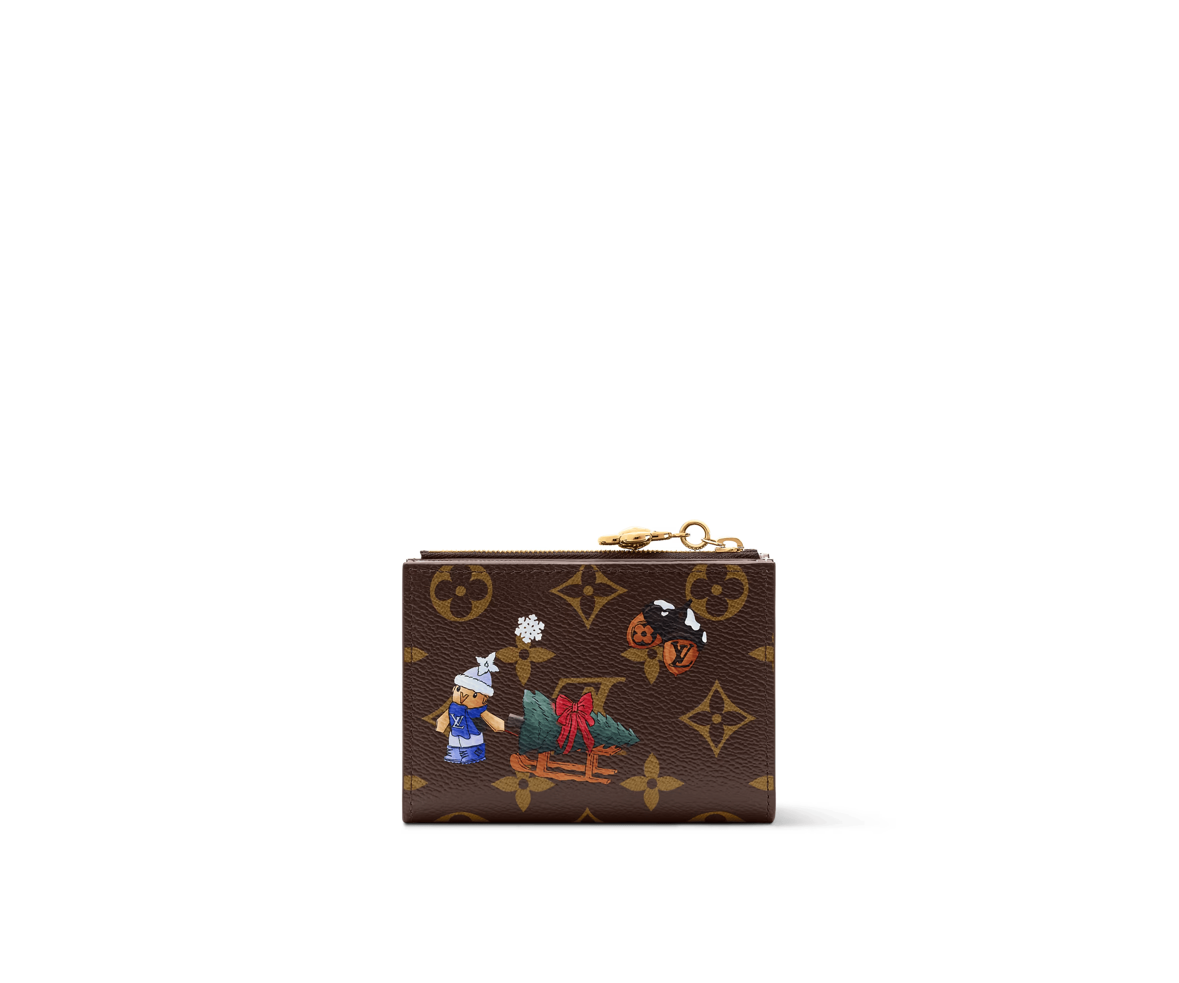 Part of the Vivienne Winter Holiday collection, this Lisa Wallet is decorated with a playful illustration of the House’s mascot. It is crafted from signature Monogram canvas, adorned with a Vivienne-shaped zipper pull in a gold-toned finish. The fun design opens to reveal a Snowy Pearl leather lining and is fitted with multiple pockets and card slots.