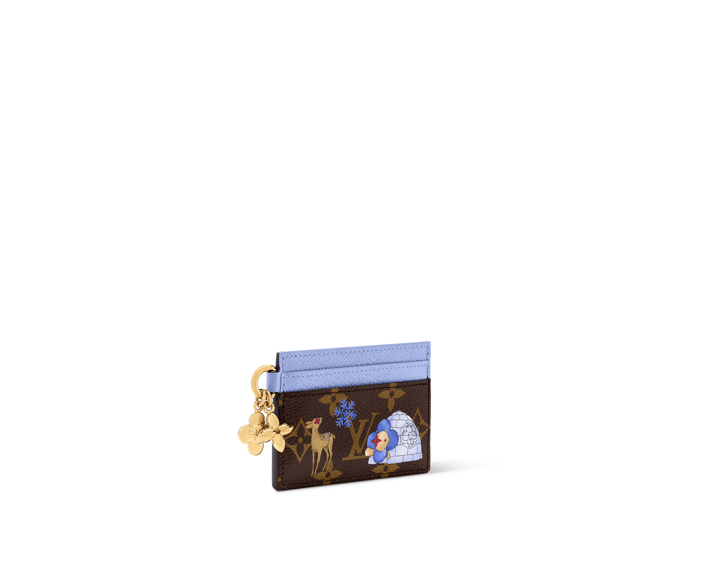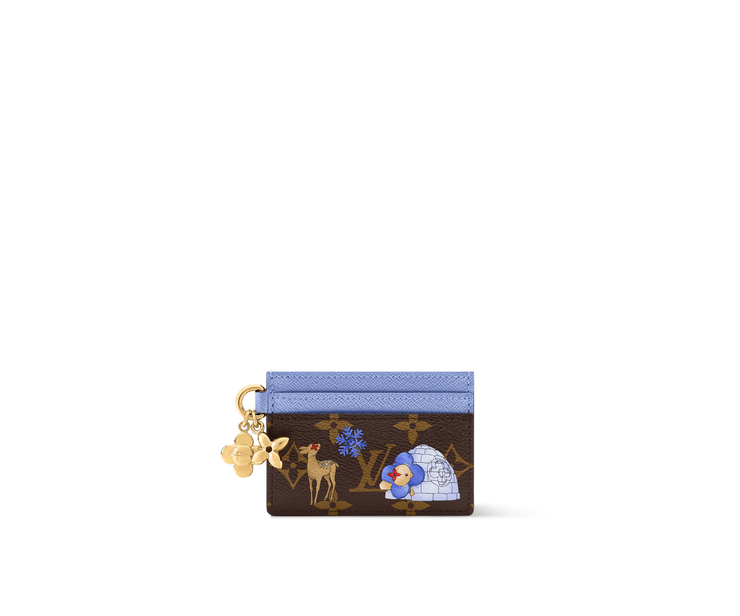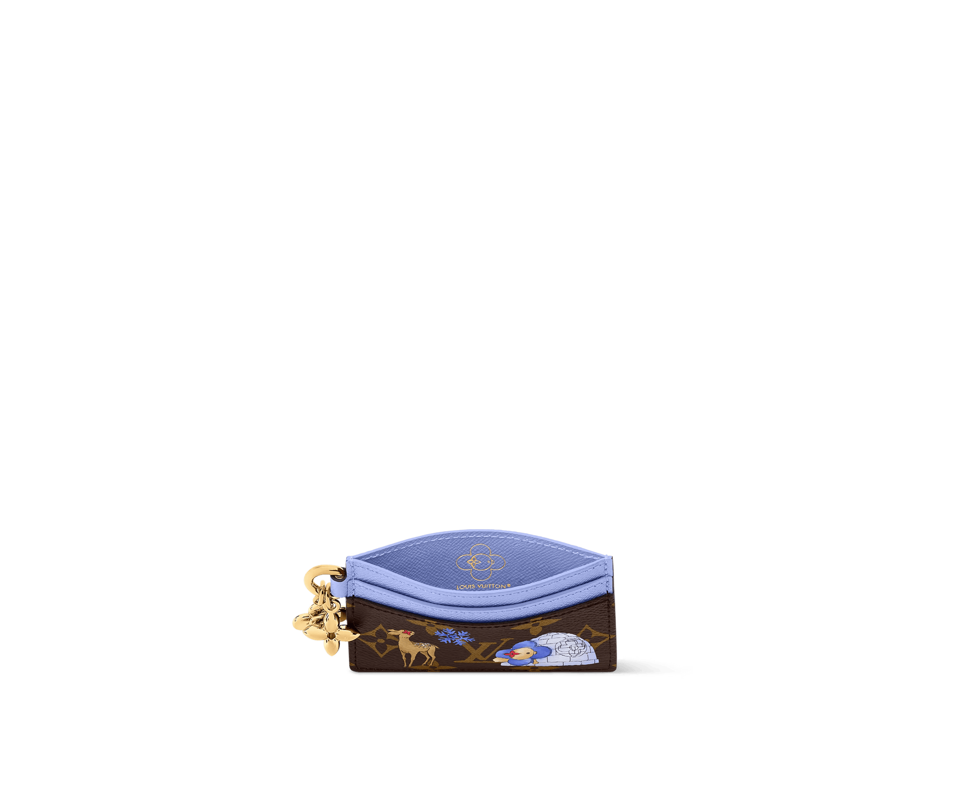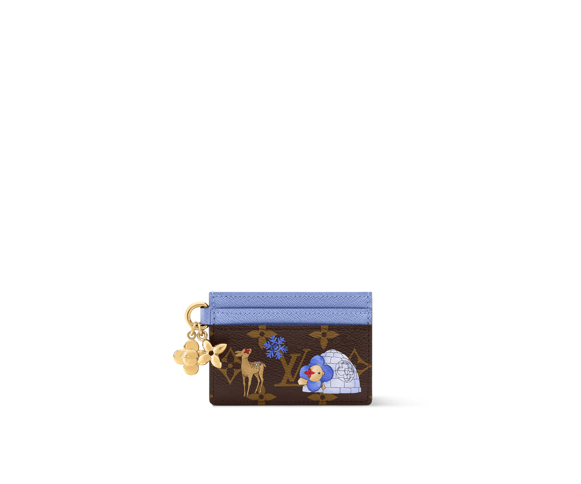 This LV Charms Card Holder is brought to life with the House’s iconic and adorable Vivienne mascot. It is crafted from signature Monogram canvas decorated with playful illustrations and features a contrasting Blue Frost leather trim. Designed with multiple card slots, the charming accessory is finished with a Vivienne-shaped charm and a classic LV Flower.