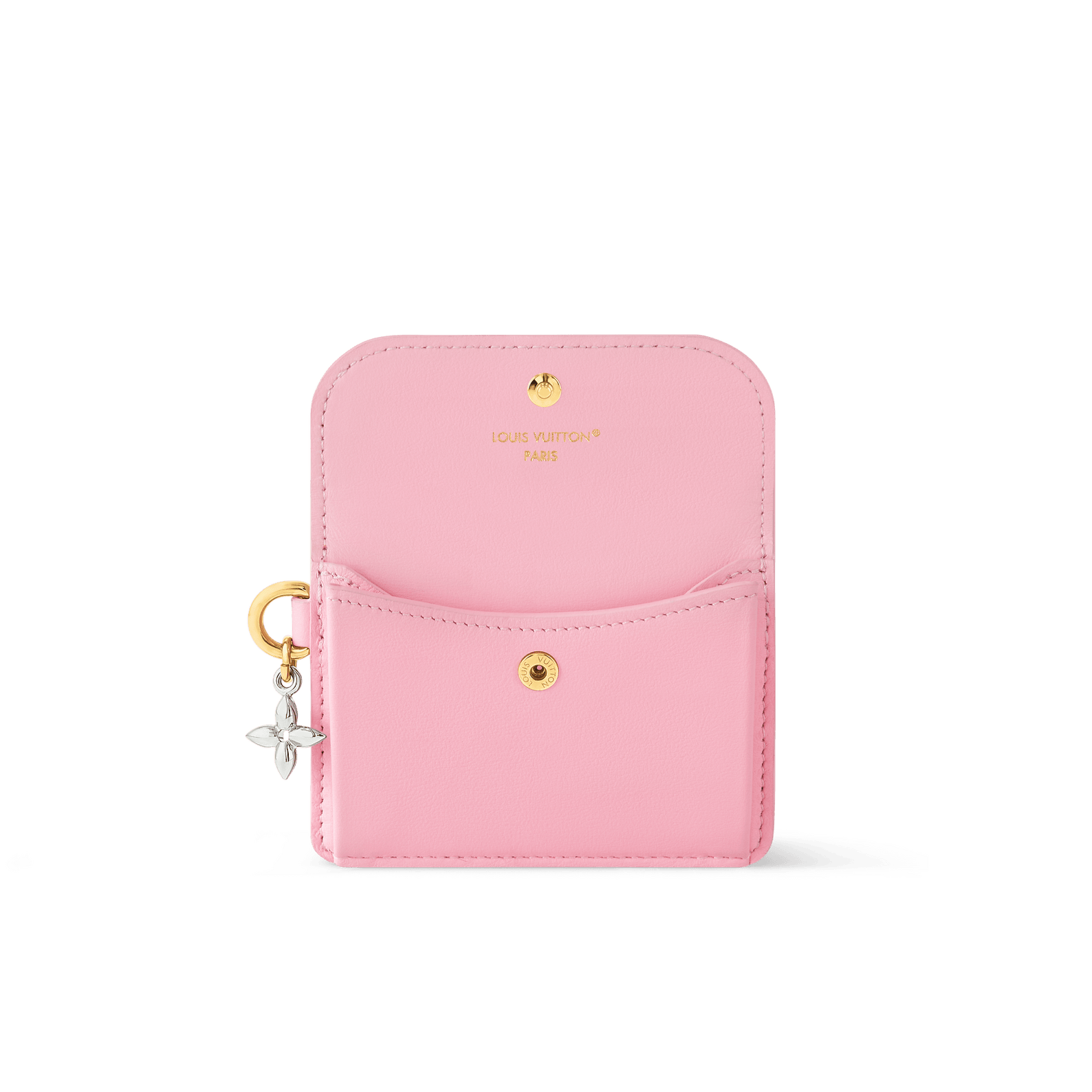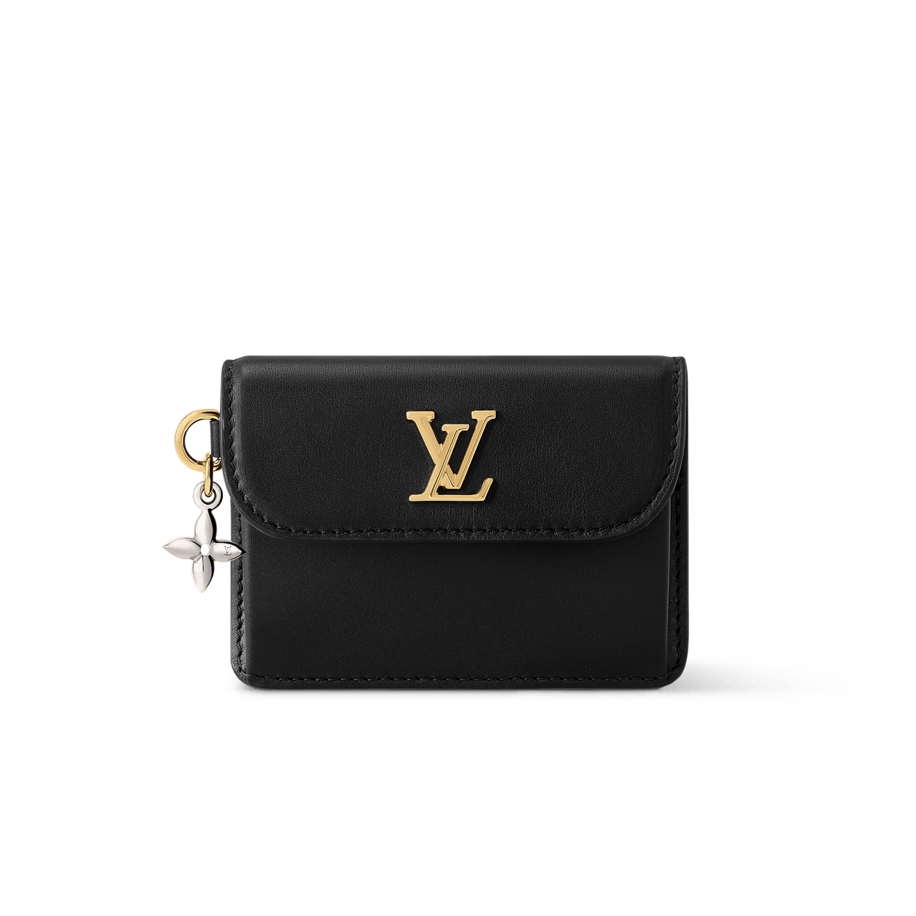 Meet the Tiny Recto Verso Card Holder from the LV Bloom collection. Offered in a timeless colorway, this elegant accessory is crafted from calfskin and adorned with a new signature Monogram Flower charm in a bi-galvanized metallic finish. It is designed with a pleated construction to maximize space, and includes a large front pocket, plus two card slots at the back.