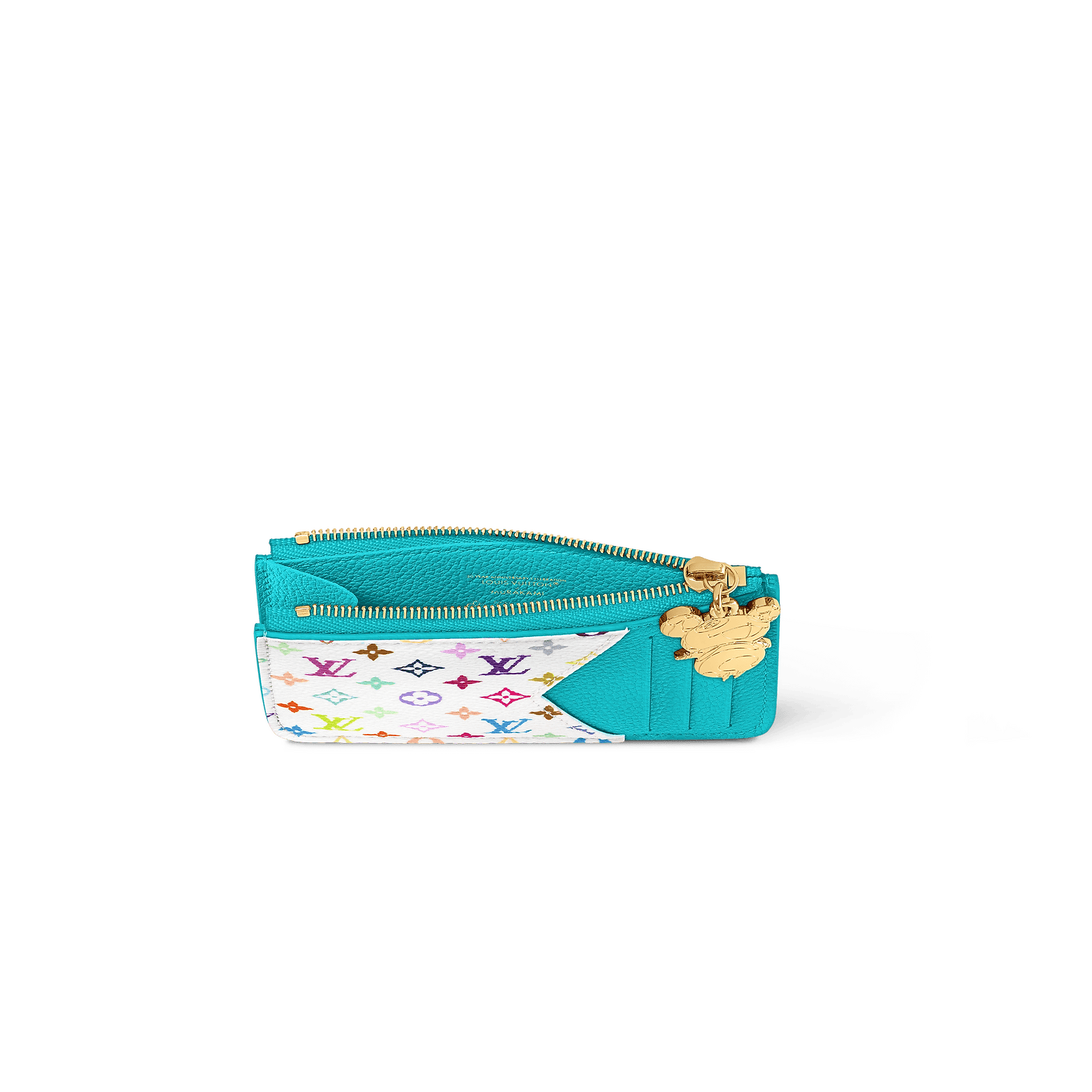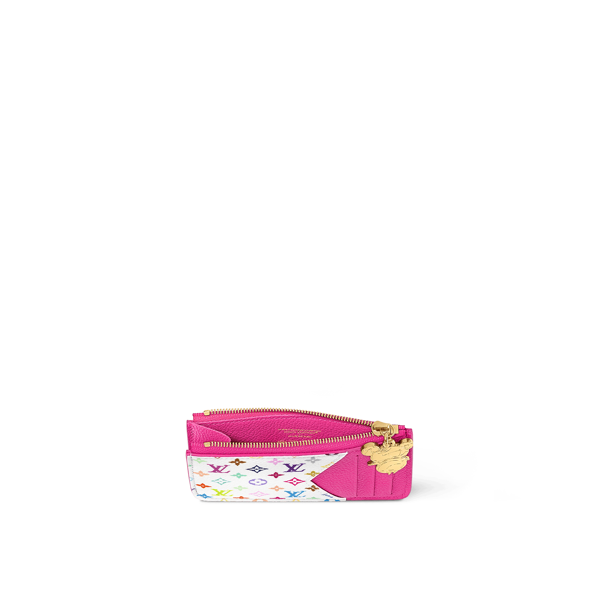 As part of the cross-category Louis Vuitton x Murakami collection, the Romy card holder is both practical and playful in a fresh colorway inspired by the Japanese artist’s go-to rainbow palette. It is subtly signed all over in Monogram Empreinte leather, while the flat pocket is vibrantly highlighted with multicolored Monogram coated canvas. The coin pocket is secured with a golden zipper trimmed with a Panda-shaped pull as a final seasonal flourish.